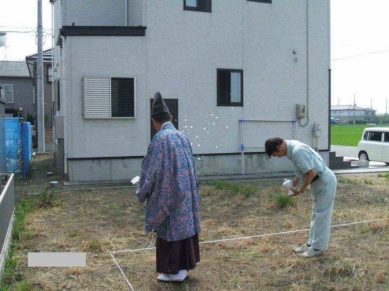 建築・土木の工事に着手する前、土地の神を祝ってその工事が無事に済むことを祈り、祭壇を設けてご祈祷します。