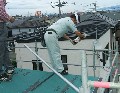 災いが起こらないようにとの願いをこめて行います。写真は屋根の上で大橋と大工です。