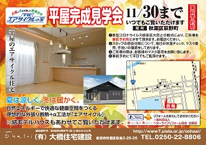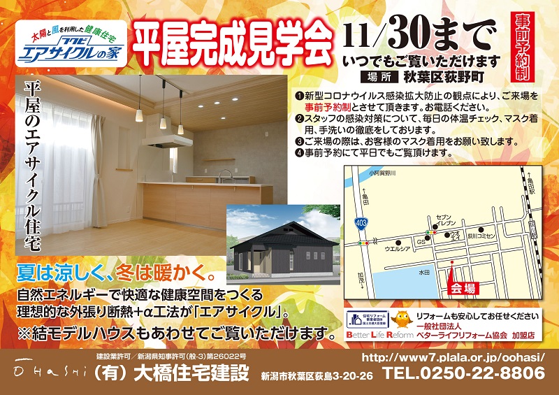 秋葉区荻野町エアサイクル住宅11月末日までご覧いただけます