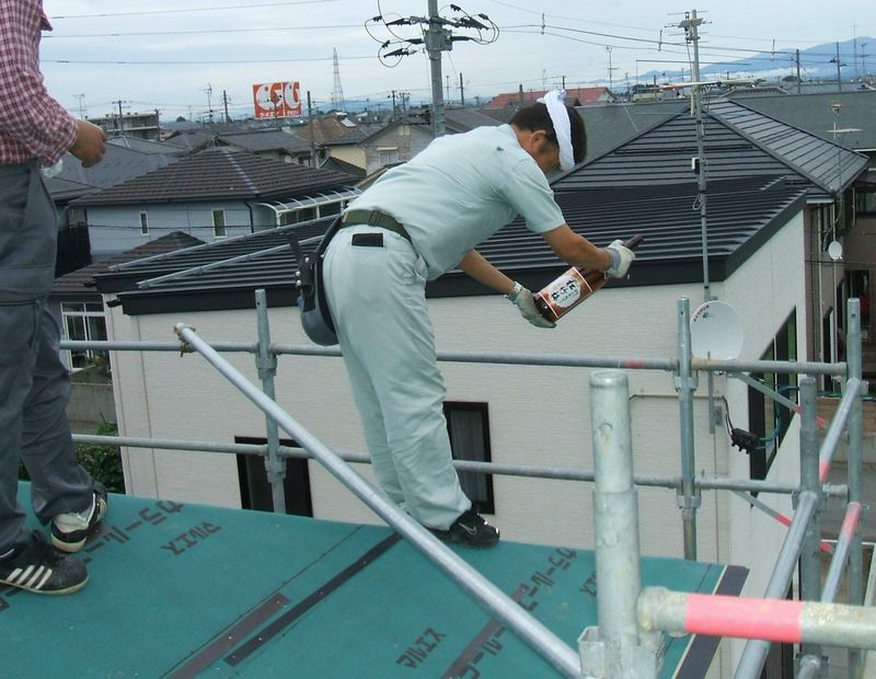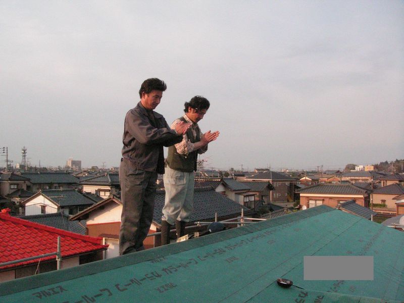 災いが起こらないようにとの願いをこめて行います。写真は屋根の上で大橋と大工です。