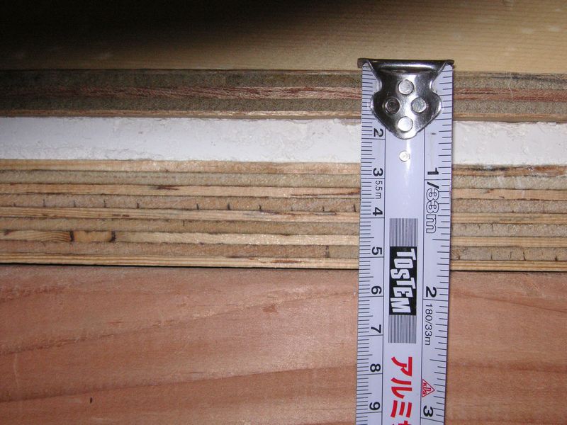 28mm合板下地、12.5mmPB、12mm化粧板貼りと、合計52.5mmの強靭な床です。